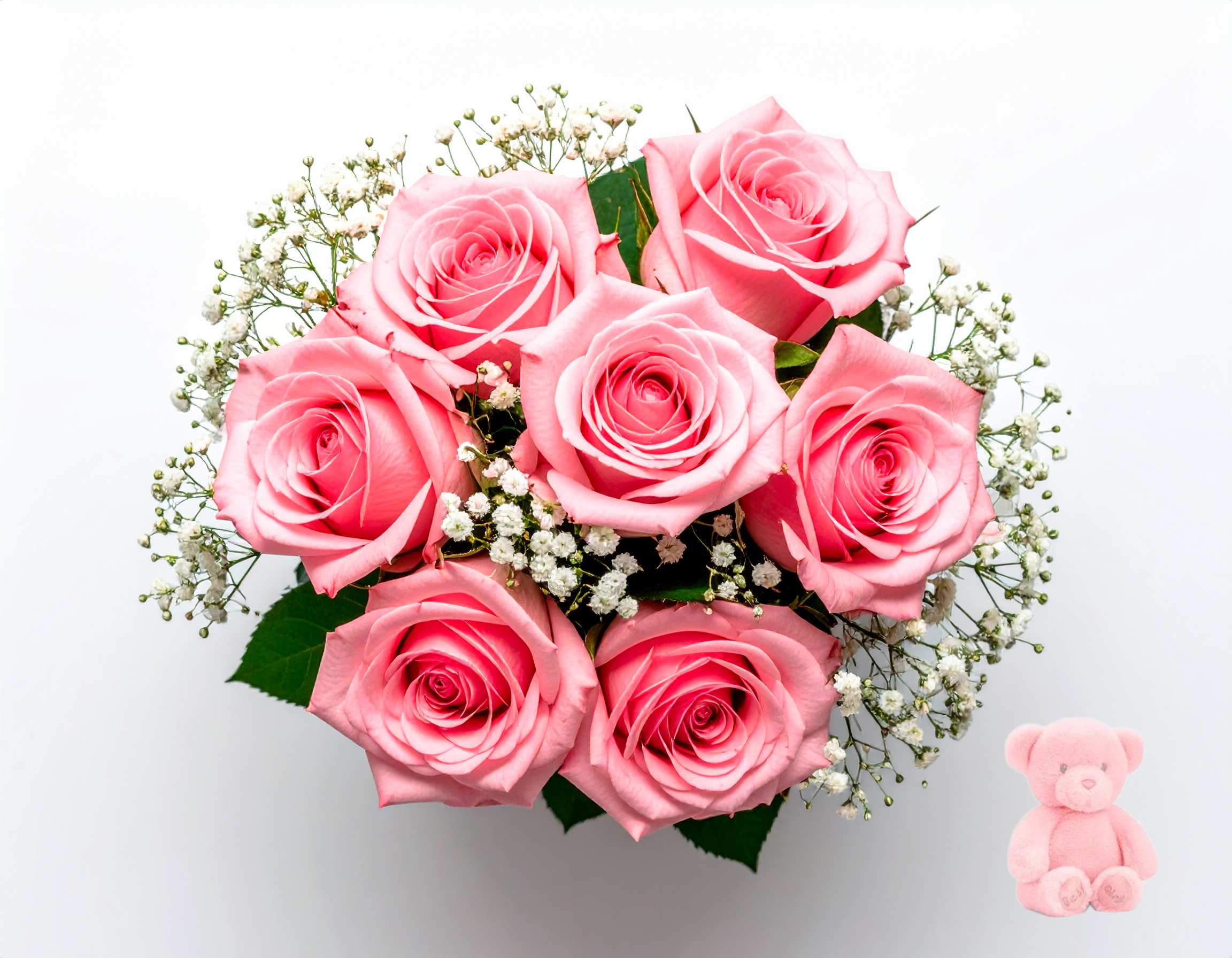 Pink roses represent thankfulness and admiration. This beautiful arrangement features sophisticated pink roses paired with delicate gypsophila blooms. It is an ideal choice for commemorating a meaningful anniversary.